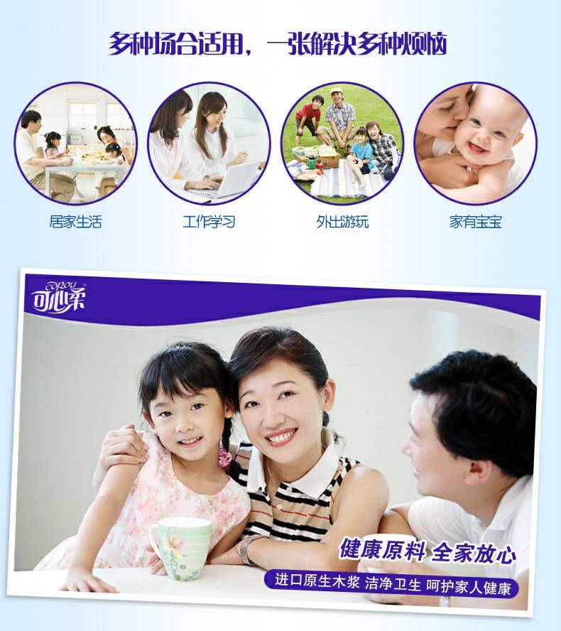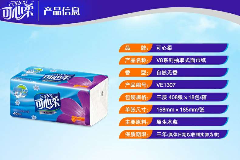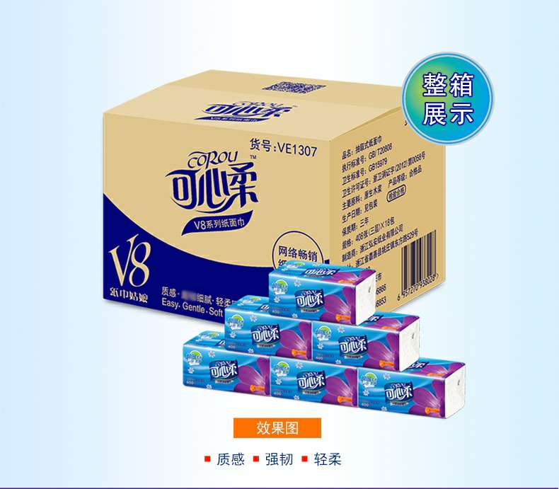 可心柔 V8系列CoRou云柔系列白色木浆60抽